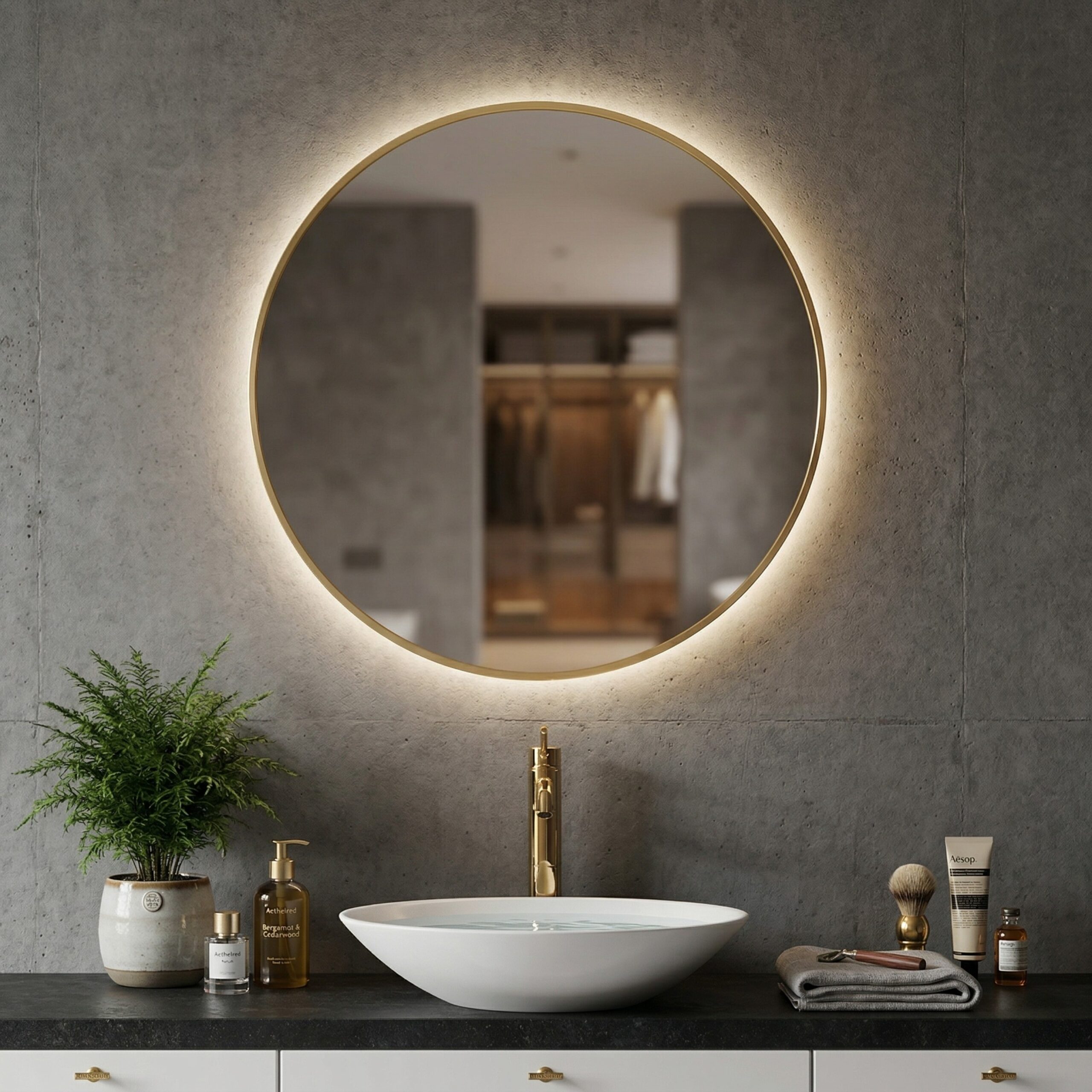 مراية تاتش راونديد إضاءة أصفر 60 سم